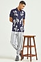 Featuring blue and white pants in linen base with printed stripes, zip fly, cuff buttons, and pockets. This contains only one piece.