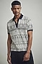 Featuring a grey jacquard-knitted polo t-shirt in cotton, polyester, and elastane base with tribal motifs and contrast rib detailing. This contains only one piece.
