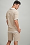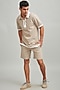 Featuring a khaki textured polo t-shirt in cotton base with half sleeves, y-neck placket, and contrast natural piping. This contains only one piece.
