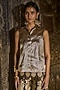 Metallic Beige Banarasi Brocade Sleeveless Shirt