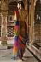 Multi-Colored Recycled Polyester Checkered Draped Skirt Saree
