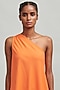 Featuring an orange one-shoulder asymmetrical dress in polyester base with a pee-a-boo panel.