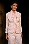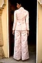 Featuring a powder pink blazer in brocade base with jacquard texture, a shawl collar and gold button detail. Accentuate it with pants, dangler earrings and heels for evening wear.