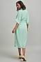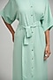 Featuring a sea-green flowy shirt dress in polyester base with an adjustable tie and buttons.