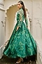 Featuring a tonal green A-line maxi skirt in organza and banarsi silk brocade base with rose print. Accentuate it with a top, hoop earrings and block heels for a stylish ensemble, ideal for brunches or an evening look.