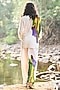 Featuring a white button down shirt in viscose and linen base with dolman sleeves, self-tie knot and hand painted. Accentuate it with flared pants, statement earrings and heels for a complete look.