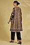 Featuring a black patra jacket in silk base with hand and machine embroidery. It is paired with salwar pants and an inner. Accentuate it with statement jewellery and heels for festive occasions or wedding ceremony.