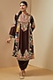 Featuring a black choga kurta in silk base with print. It is paired with pleated salwar pants. Accentuate with statement jewellery and heels for festive occasions.