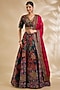 Featuring a blue lehenga in chanderi and organza base with floral print. It is paired with a hand and machine embroidered blouse and a dupatta. Accentuate it with kundan polki jewellery and block heels for a sangeet or wedding ceremony.