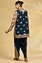 Featuring a blue kurta in silk base with hand and machine embroidery. It is paired with pleated salwar pants and a dupatta. Accentuate it with statement earrings and metallic heels for festive dinners or elegant evening events.