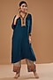 Featuring a blue kaftan style kurta in silk base. It is paired with embroidered pants. Perfect wear for festive or pooja ceremony.