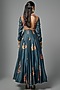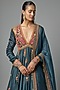 Featuring a blue kalidar anarkali in silk base with mirror hand and machine embroidery. It is paired with a dupatta. Accentuate it with a pearl choker necklace, a polti bag and block heels for festive occasion, pooja or pre-wedding ceremonies.