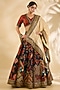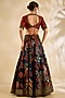 Featuring a blue lehenga in silk and organza base with floral print, hand and machine embroidery. It is paired with a blouse and a dupatta. Accentuate it with kundan polki jewellery, a sleek bun and wedges for weddings or a sangeet look.