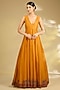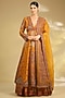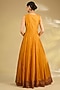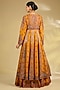 Featuring a burnt orange kalidar anarkali in silk base with hand and machine embroidery. It is paired with an inner and a dupatta. Accentuate it with statement earrings and metallic heels for festive dinners or elegant evening events.