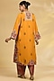 Featuring a burnt orange kurta in silk base with hand and machine embroidery. It is paired with pleated salwar pants and a dupatta. Accentuate it with statement earrings and metallic heels for festive dinners or elegant evening events.