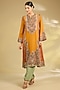 Featuring a burnt orange kurta in silk base with hand and machine embroidery. It is paired with salwar pants. Accentuate it with statement jewellery and heels for festive occasion.