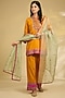 Featuring a burnt orange kurta in silk base with hand and machine embroidery. It is paired with salwar pants and a dupatta. Accentuate it with dangler earrings, a potli bag and juttis for a wedding or sangeet ceremony.