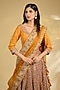 Featuring a burnt orange lehenga in silk base with hand and machine embroidery. It is paired with an embroidered blouse and an embroidered dupatta. Accentuate the designer lehenga with kundan polki jewellery, a potli bag and heels for your wedding, sangeet or engagement ceremony.