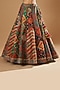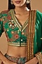 Featuring a green lehenga in chanderi mulmul silk base. It is paired with a matching blouse and a dupatta.