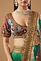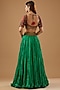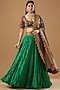 Featuring a green lehenga in crushed chanderi base. It is paired with a matching chanderi blouse having mughal print and hand embroidery, including a printed dupatta.