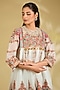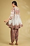 Featuring an ice blue frock dress in silk base with hand and machine embroidery. It is paired with printed pleated salwar pants. Style it with a clutch and heels for a festive night or sangeet ceremony.
