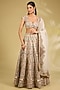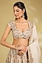 Featuring an ice blue lehenga in silk organza base with hand and machine embroidery. It is paired with a blouse and a dupatta. Style it with a clutch and heels for festive nights, sangeet or wedding functions.