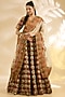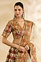 Featuring an ivory lehenga in silk and organza base with abstract print, hand and machine embroidery. It is paired with a blouse and dupatta. Accentuate the look with statement jewellery, clutch and block heels for festive celebrations, mehendi, haldi or wedding ceremonies.