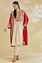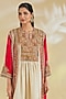 Featuring an ivory kaftan kurta in silk base with hand and machine embroidery. It is paired with pants. Style with polki jewellery, soft curls and heels for festive occasions, weddings or sangeet ceremonies.