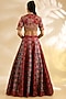 Magenta & Blue Silk Abstract Printed & Embroidered Lehenga Set