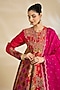 Featuring a magenta kalidar anarkali in chanderi and organza base with hand and machine embroidery, adorned with floral print. It is paired with a dupatta. Accentuate it with jewellery, potli bag and embellished heels for a stylish ensemble, ideal for festive gatherings, sangeet nights, or wedding ceremony.