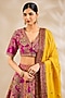 Featuring a magenta lehenga in chanderi and silk base with hand and machine embroidery, including floral print. It is paired with a blouse and dupatta. Accentuate it with jewellery, potli bag and embellished heels for a stylish ensemble, ideal for festive gatherings, sangeet nights, or wedding ceremony.