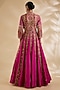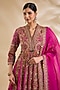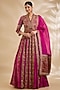Featuring a magenta anarkali in silk base with hand and machine embroidery. It is paired with an embroidered dupatta. Accentuate it with kundan polki or swarovski jewellery, embellished heels and a potli bag for your wedding, sangeet or engagement ceremony.