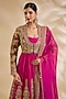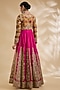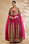 Featuring a magenta anarkali in silk and organza base with hand and machine embroidery. It is paired with a jacket and a dupatta. Accentuate it with kundan polki jewellery and block heels for a sangeet or wedding ceremony.