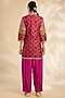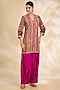 Featuring a magenta kurta in silk base with hand and machine embroidery. It is paired with pants. Accentuate it with dangler earrings and heels for a festive occasion, family gathering, sangeet or engagement ceremony.