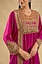 Featuring a magenta kurta in silk base with hand and machine embroidery. It is paired with pants. Accentuate it with statement earrings and heels for a complete look.
