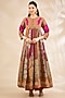 Featuring a magenta kalidar anarkali in silk and chanderi base with hand and machine embroidery, including floral print. It is paired with pants. Accentuate it with jewellery, potli bag and embellished heels for a stylish ensemble, ideal for festive gatherings, sangeet nights, or wedding ceremony.