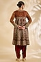 Featuring a maroon kurta in silk base with hand and machine embroidery. It is paired with pants. Accentuate it with statement dangler earrings and block heels for weddings or a sangeet look.