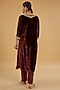 Featuring a maroon kurta in velvet base with hand embroidery. It is paired with pants. Accentuate it with statement earrings and heels for a festive occasion or pooja ceremony.