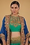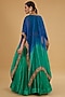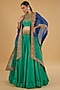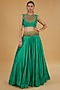 Featuring a meena green skirt in chanderi silk base. It is paired with an embroidered top and an organza embroidered cape. Accentuate it with statement earrings and heels for a sangeet or engagement ceremony.