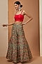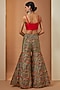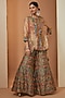 Featuring a mint jacket in tissue base. It is paired with a bustier and printed sharara pants. Style it with statement earrings and block heels for a festive occasions, sangeet ceremony or family gatherings.