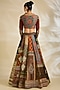 Featuring a multi-colored lehenga in chanderi, brocade and silk base with hand and machine embroidery, adorned with floral print. It is paired with a blouse and dupatta. Accentuate it with jewellery, potli bag and embellished heels for a stylish ensemble, ideal for festive gatherings, sangeet nights, or wedding ceremony.