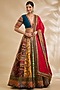 Multi-Colored Raw Silk Hand & Machine Embroidered Lehenga Set