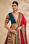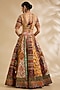 Featuring a multi-colored lehenga in raw silk and silk base with hand and machine embroidery, including floral print. It is paired with a blouse and a dupatta. Accentuate it with kundan polki jewellery and block heels for a haldi or wedding ceremony.