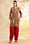 Featuring a multi-colored short boho kurta in silk base with floral print, hand and machine embroidery. It is paired with pants. Accentuate the look with statement jewellery, clutch and block heels for festive celebrations, mehendi, haldi or wedding ceremonies.