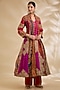 Featuring a multi-colored anarkali in silk base with hand and machine embroidery. It is paired with pants. Accentuate it with kundan polki jewellery and block heels for a wedding, sangeet or engagement ceremony.