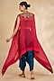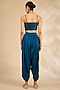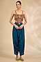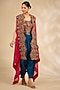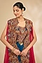 Featuring a multi-colored cape in silk and organza base with hand and machine embroidery. It is paired with a bustier and dhoti pants. Accentuate it with polki dangler earrings, a potli bag and block heels for festive occasions, cocktail, sangeet ceremony.