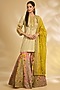 Featuring multi-colored sharara pants in silk and organza base with hand and machine embroidery. It is paired with a kurta and a dupatta. Accentuate it with statement jewellery and heels for a festive occasion, cultural event, wedding or sangeet ceremony.