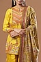 Featuring a mustard kurta in bangalore silk, chanderi and mulmul base. It is paired with matching sharara pants and a dupatta.
