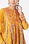 Featuring a mustard kalidar kurta in chanderi base. It is paired with matching printed palazzo pants and an organza dupatta.