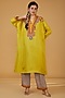 Featuring a mustard kaftan style kurta in chanderi silk base with embroidery. It is paired with pants. Accentuate this designer kurta set with dangler earrings and block heels for festive occasions.